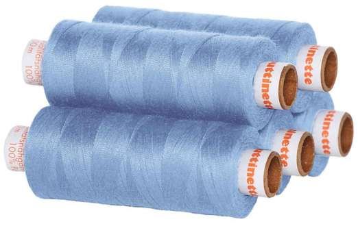 buttinette Universal-Nähgarn, Farbe: eisblau, Fadenstärke: 100, Nadelstärke: 60 - 100, Inhalt: 5 Spulen, 500 m pro Spule. Material: 100 % Polyester.