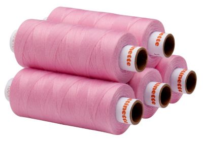 buttinette Universal-Nähgarn, Farbe: rosa, Fadenstärke: 100, Nadelstärke: 60 - 100, Inhalt: 5 Spulen, 500 m pro Spule. Material: 100 % Polyester.