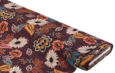 Crêpe "Blumen", Farbe: lila-color, Breite: 145 cm, Gewicht: ca. 120 g/m². Material: 97 % Polyester, 3 % Elasthan.