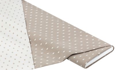 Damast "Miniraute" mit Teflon-Beschichtung, Farbe: taupe, Motivgröße: 10 x 5 mm, Breite: 160 cm, Gewicht: ca. 250 g/m². Einlaufwerte: 1–2 % in der Breite. Material: 100 % Polyester.