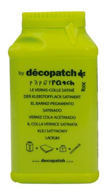 Décopatch-Kleber, schnelltrocknend, glänzend, nach dem Trocknen transparent, hält auf sämtlichen trockenen und festen Untergründen, klebt Papier und Gewebe, hergestellt auf Wasserbasis. Wenn er ausgehärtet ist, ist er wasserabweisend. Nicht frostbeständig. Inhalt: 300 g.