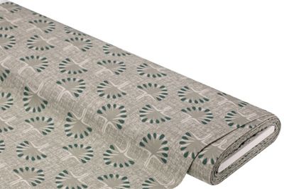 Dekostoff "Ginkgoblatt" aus der Serie Lorena, Farbe: grün-color, Motivgröße Ginkgoblatt: ca. 7 x 6,5 cm, Breite: 140 cm, Gewicht: ca. 170 g/m². Material: 70 % Baumwolle, 30 % Polyester.