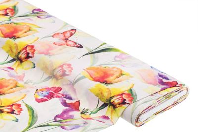 Sie möchten gerne frühlingsfrischen Wind in Ihr Zuhause bringen? Da hätten wir was für Sie: Dieser schöne Dekostoff ist zart, romantisch und herrlich bunt – genauso wie die Schmetterlinge, die ihn zieren! Die für Aquarell- und Wasserfarben üblichen fließenden Farbverläufe sorgen für eine traumhaft dynamische Optik, ohne überladen zu wirken. So setzen Sie wunderbar farbige Akzente in Ihren vier Wänden – egal, ob Sie daraus Läufer, Kissenhüllen, Überwürfe oder Regalvorhänge nähen. Gleich bestellen und schon bald Deko-Träume nähen!