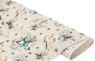 Dekostoff "Weihnachtskugeln" aus der Serie Lorena, Farbe: natur-color, Motivgröße Kugel: 7 cm Ø, Breite: 140 cm, Gewicht: ca. 170 g/m². Material: 70 % Baumwolle, 30 % Polyester.