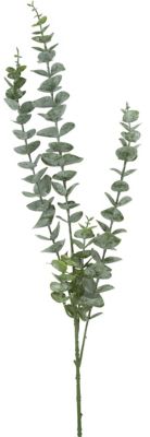 Eukalyptus-Zweig aus Kunststoff, Farbe: grün, Gesamtlänge: 80 cm, Stiellänge: 33 cm.