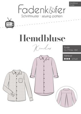 Fadenkäfer Schnitt "Hemdbluse" für Kinder, verschiedene Varianten, Größe 74–164, Schwierigkeitsstufe: schwer, Stoffempfehlung: leichte, gewebte Stoffe, z. B. Hemdenjeans, Popeline, Flanell, Viskose, Babycord, Musselin, Leinen.