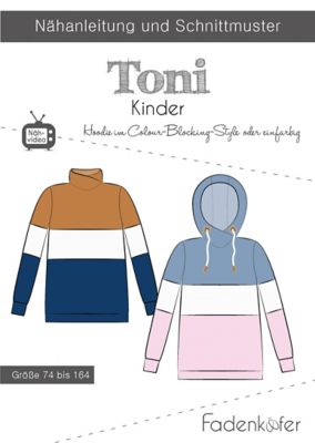 Fadenkäfer Schnitt "Hoodie Toni" für Kinder, mehrere Varianten möglich, Größe 74–164, Schwierigkeitsstufe: leicht, Stoffempfehlung: Sweatstoffe, Alpenfleece, Strick, formstabiler Jersey o.ä.