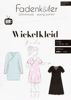 Fadenkäfer Schnitt "Wickelkleid" für Kinder, Anleitung für mehrere Varianten, Größe 80–164, Schwierigkeitsstufe: mittel, Stoffempfehlung: elastische Stoffe, Jersey.