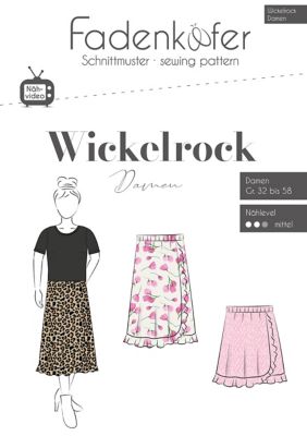 Fadenkäfer Schnitt "Wickelrock" für Damen, 2 Modelle, Größe 32–58, Schwierigkeitsstufe: mittel, Stoffempfehlung: leicht fallende, fließende, gewebte Stoffe.