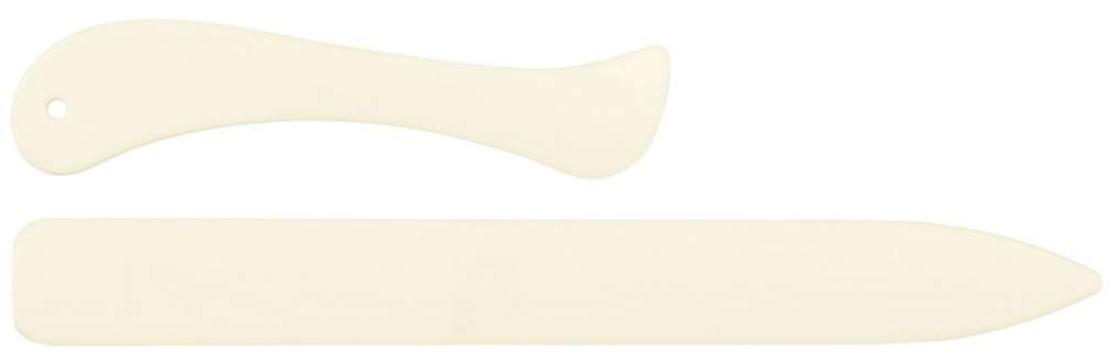 Falzbein-Set aus Kunststoff, Farbe: weiß, Längen: 20,5 cm und 12 cm, Inhalt: 2 Stück.