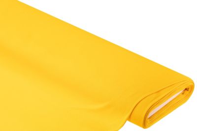 Feinripp-Viskose-Jersey, Farbe: gelb, querelastisch, Rippenbreite: 2 mm, Rippen längs verlaufend, Breite: 150 cm, Gewicht: ca. 130 g/m². Material: 95 % Viskose, 5 % Elasthan.