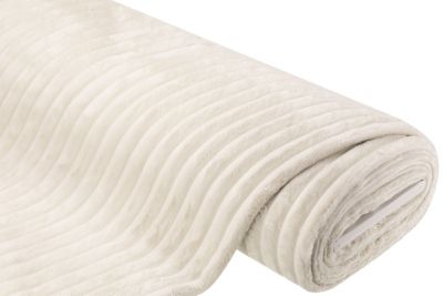 Fellimitat mit Rippen, Farbe: natur, Rippenbreite: 2,5 cm, mit glatter Rückseite, Scheuerwert: 60.000 Touren, Lichtechtheit: 5, Breite: 140 cm, Gewicht: ca. 430 g/m². Material: 100 % Polyester.