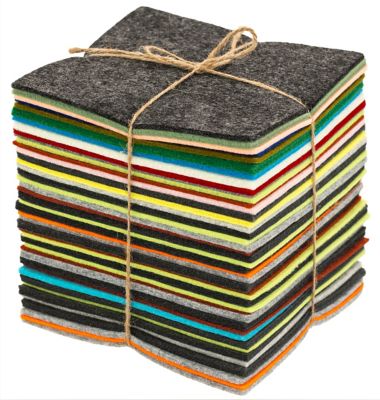 Filz Mix "bunt", Farben je nach Anfall, Größe: je 15 x 15 cm, Stärke: 1–5 mm, Inhalt: 500 g. Material: 100 % Polyester.