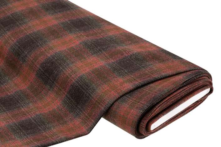 Flanell „Karo“ mit Wolle, Farbe: lachs/braun, Karogröße: 6 x 6 cm, Breite: 150 cm, Gewicht: ca. 225 g/m². Material: 60 % Wolle, 40 % Polyester.