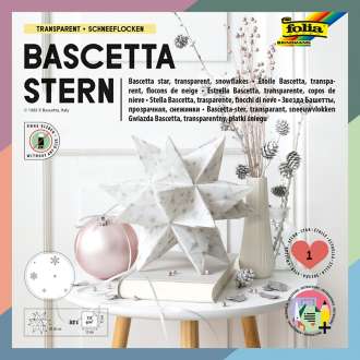 folia Transparentpapier-Faltblätter "Bascetta-Stern" Schneeflocken zum Basteln eines dreidimensionalen Origami-Sterns in der Größe 20 cm Ø, Farbe: weiß-silber, Größe: 15 x 15 cm, Gewicht: 115 g/m², Inhalt: 32 Blatt und eine Anleitung.