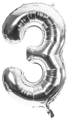 Folienballon "3" – dank ihrer stattlichen Größe von 86 cm lässt sich der Partyraum mit unseren Zahlen-Ballons eindrucksvoll dekorieren!