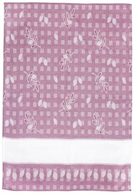 Geschirrtuch "Oliven". Fertig genäht, mit eingewebtem Jacquardmuster "Oliven" und Aidaborte zum individuellen Besticken (ca. 5 Stiche/cm). Stofffarbe: beere/weiß. Größe: 50 x 70 cm, Aida-Borte: Breite 9 cm. Material: 100 % Baumwolle.