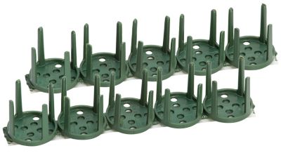 Gesteckhalter mit selbstklebender Knetmasse auf der Unterseite zur Fixierung von Steckschaum auf glatten Oberflächen. Größe: 2,5 cm hoch, 3 cm Ø, Inhalt: 10 Stück.