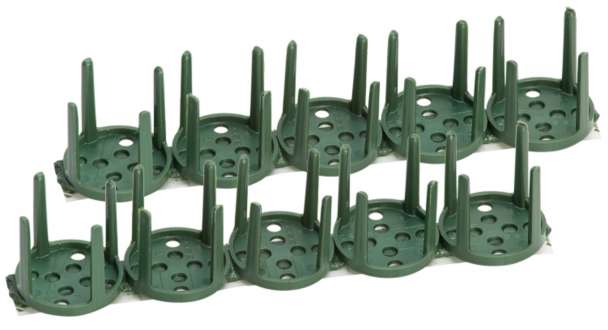 Gesteckhalter mit selbstklebender Knetmasse auf der Unterseite zur Fixierung von Steckschaum auf glatten Oberflächen. Größe: 2,5 cm hoch, 3 cm Ø, Inhalt: 10 Stück.
