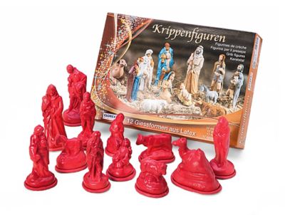 Gießformen "Krippenfiguren" aus Latex, Größen: 3,5–11 cm, Inhalt: 12 Latex-Gießformen. Materialverbrauch: Gießmasse 1.200 g.
