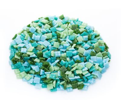Glas-Mosaik im Mischpack, frost- und hitzebeständig, Größe: 10 x 10 mm, Stärke: 3 mm, Inhalt: 750 g = ca. 1.080 Stück.