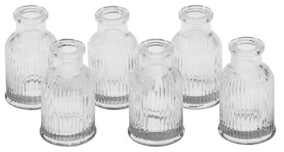 Glasvasen, gerillt, Größe: 7,4 cm hoch, 4,3 cm Ø, Öffnung: 1,5 cm Ø, Inhalt: 6 Stück.