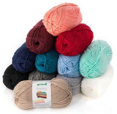 gründl Pretty. Pretty yarn, pretty DIYs. Ganz nach diesem Motto stricken oder häkeln Sie sich mit dem reinen Acryl-Garn durch ein Potpourri an wunderschönen Kreativprojekten: Wie wäre es mit Schals, Mützen, Handschuhen, Jacken, Pullovern oder Westen für die ganze Familie? Auch besondere Kissenhüllen oder Nackenrollen sind im Nu aus dem modischen Schnellstrickgarn gearbeitet. Lassen Sie Ihrer Kreativität freien Lauf; Sie werden von der wärmend weichen Haptik und der hübschen Optik begeistert sein! Dank Antipilling-Ausrüstung fallen kleine Knötchen, die sich an beanspruchten Stellen des Strick- bzw. Häkelmodells bilden können, während der Wäsche ab – praktisch, oder?
