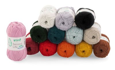 gründl Second Life. Schenken Sie alten Plastikflaschen ein neues Leben! Sie fragen sich wie? Ganz einfach: Greifen Sie bei diesem Universalgarn zu und lassen Sie die Handarbeitsnadeln klappern; Second Life von gründl besteht nämlich zu 86 % aus recyceltem Polyester und ist damit besonders nachhaltig. Freuen Sie sich auf kuschelweiche Deko wie Kissen oder Decken; aber auch wohlig-warme, modische Lieblingsteile wie Pullis, Strickjacken, Schals und Stirnbänder lassen sich wunderbar aus dem Garn arbeiten. Also: Entscheiden Sie sich für eine oder mehrere der fantastischen Farbnuancen – von pastellig über kräftig bis hin zu erdig – und erschaffen Sie DIYs für die Ewigkeit, denn dank der einzigartigen Strapazierfähigkeit des Garns halten sie endlos, ohne Pillingbildung, ohne störende Knötchen!
