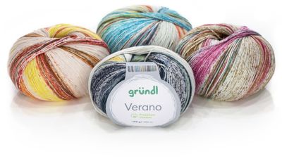 gründl Verano. Sommer, Sonne, Kreativzeit! Mit gründl Verano können Sie sich so richtig austoben! Das schöne Sommergarn aus reiner, hochwertiger Baumwolle ist ideal für hübsche, trageangenehme Strick- und Häkelmode wie leichte Tops, Shirts, Jäckchen oder Kleider. Auch Accessoires können wir uns sehr gut aus gründl Verano vorstellen; sie sind wahre Farbtupfer und verleihen Ihren Outfits den letzten Schliff! Besonders werden Sie über den superlangen Farbverlauf staunen, der harmonische Farben sanft ineinanderfließen lässt – perfekt, um mit der Sonne um die Wette zu strahlen!