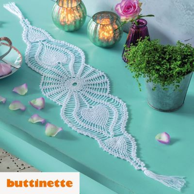 Häkelanleitung – Längliches Deckchen aus Woll Butt Diana. Dieses Häkeldeckchen zaubert einen Hauch von Nostalgie auf jeden Tisch. Mit liebevollen Details verleiht es Ihrem Zuhause einen charmanten Touch und lockert das Ambiente auf. Und das sicherlich nicht nur in Weiß, denn das Colorgarn gibt es in vielen wundervollen frischen Farben; so ist bestimmt auch Ihre Lieblingsfarbe dabei!