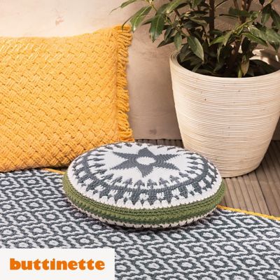 Häkelanleitung - Rundkissen aus Woll Butt Lisa. Die gehäkelten Home-Accessoires bringen Boho-Flair in Ihr Zuhause! Das eckige Kissen besticht durch das Zopf-Allover aus