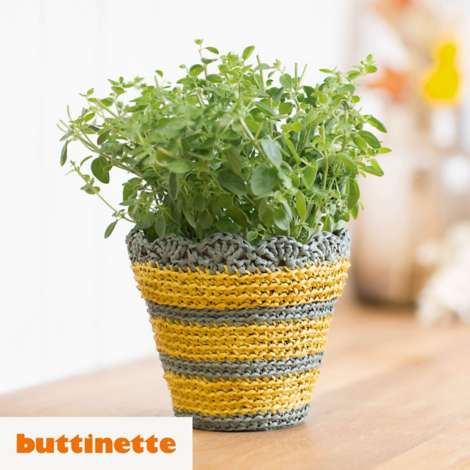 Häkelanleitung – Übertopf aus Woll Butt Raffia. Dieser hübsche Übertopf aus unserer Woll Butt Raffia in Papiergarn-Optik ist ein absoluter Hingucker und im Nu gehäkelt!