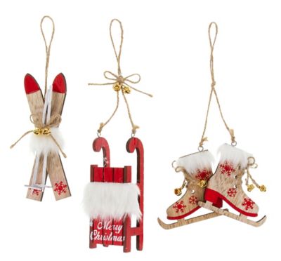 Holz-Hänger "Ski, Schlitten, Schlittschuh", rot, 8–14 cm, 3 Stück