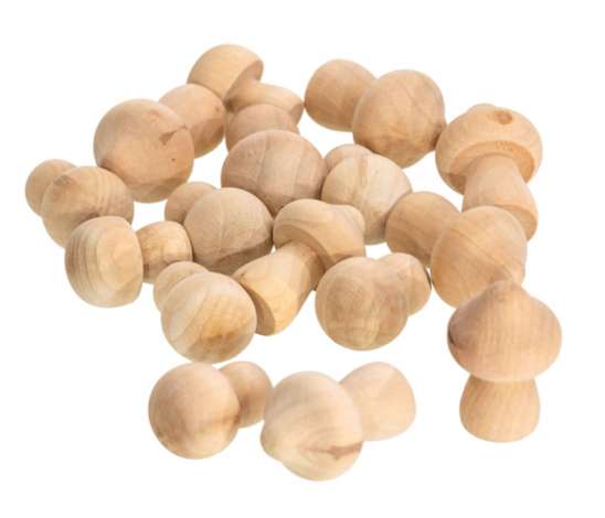 Pilze aus Holz, Farbe: natur, Größe: 3–4,5 cm, Inhalt: 16 Stück.