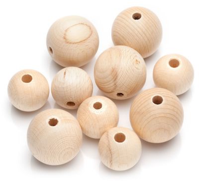 Holzkugeln, geschliffen und poliert, durchgebohrt, Größe Lochbohrung: ca. 6 - 4 mm Ø, Inhalt: 10x 20 mm und 10x 30 mm = gesamt 20 Stück.