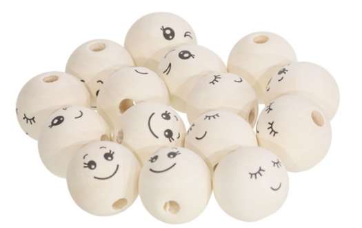 Holzkugeln mit verschiedenen Gesichtern, 25 mm Ø, 15 Stück