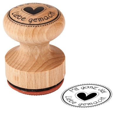 Holzstempel rund "Mit ganz viel Liebe gemacht", 3 cm Ø