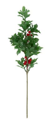 Ilexzweig aus Kunststoff, mit Blättern und roten Beeren, Farbe: grün, Beerengröße: 1 cm Ø, Länge: 50 cm, Stiellänge: 20 cm.