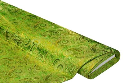 Jacquard "Blumen/Paisley", Farbe: grün/gold, Breite: 145 cm, Gewicht: ca. 130 g/m². Material: 100 % Polyester.