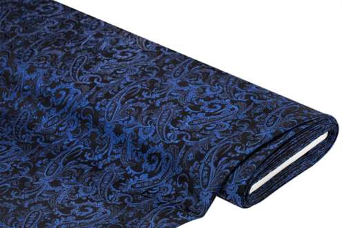 Jacquard "Royal Paisley", Farbe: blau/schwarz, Breite: 145 cm, Gewicht: ca. 140 g/m². Material: 100 % Polyester.