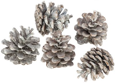 Kiefernzapfen, Farbe: weiß-braun, Größe: ca. 5–8 cm, Inhalt: 250 g = ca. 9–12 Stück.