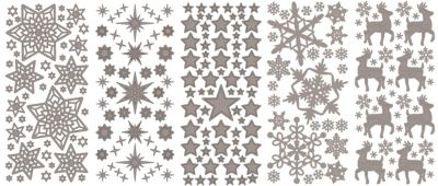 Klebesticker "Weihnachten 1", einseitig klebend, Farbe: silber, Bogengröße: 23 x 10 cm, Motivgröße: 0,7–7,5 cm, Inhalt: 5 Bogen.