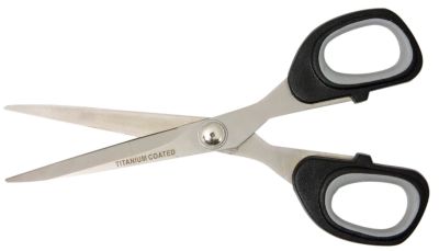 Kleiber Haushalts- und Bastelschere, aus Edelstahl mit einer hochwertigen Titanbeschichtung, nachschleifbar, mit Soft-Touch-Griff. Länge: 17,5 cm.