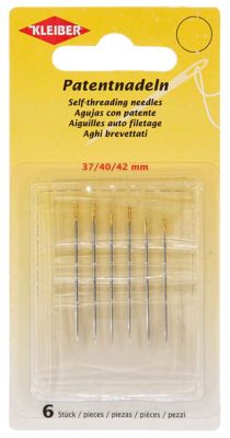 Kleiber Patentnadeln, mit Federöhr zum leichten Einfädeln des Fadens, Stärke: 0,75–0,88 mm, Länge: 37–47 mm, Inhalt: 6 Stück. Material: Stahl.