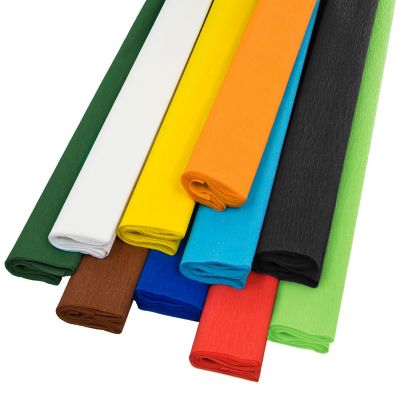 Krepp-Papier "Basic", 10-farbig sortiert, Größe je Farbe 50 cm x 2 m, Gewicht: 32 g/m², Inhalt: 10 Rollen.