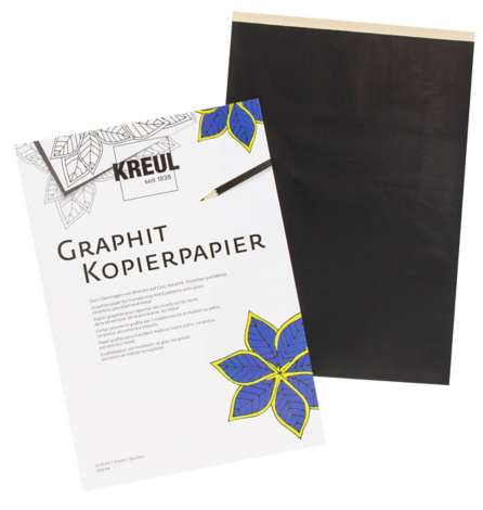 Kreul Graphit-Kopierpapier, zum Übertragen von Motiven auf Glas, Keramik, Porzellan, Metall und Holz. Größe: 21 x 29,7 cm, Inhalt: 10 Blatt.
