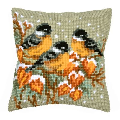 Kreuzstichkissen "3 Vögel & Physalis". Superleicht zu sticken, geeignet für Kinder ab 8 Jahren. Komplettpackung: Anleitung, Garn, Sticknadel. Ohne Kissenrücken und -füllung. Größe: 40 x 40 cm. Material: Stoff handbemalter Stramin 100 % Baumwolle (ca. 18 Stiche/10 cm), Garn 100 % Polyacryl.