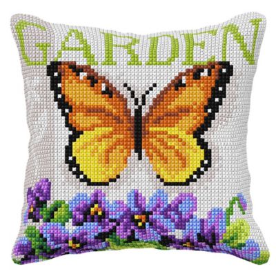 Kreuzstichkissen "Garden". Superleicht zu sticken, geeignet für Kinder ab 8 Jahren. Komplettpackung: Anleitung, Garn, Sticknadel. Ohne Kissenrücken und -füllung. Größe: 40 x 40 cm. Material: Stoff bedruckter Stramin 100 % Baumwolle (ca. 18 Stiche/10 cm), Garn 100 % Polyacryl.