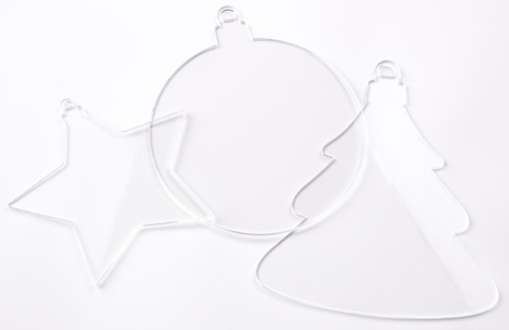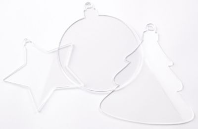 Kunststoff-Malscheiben "Weihnachten" zum Verzieren mit Lackmarkern, Kreidestiften, uvm., Farbe: transparent, Größen: 9,5–11,5 cm, Inhalt: 3 Stück.