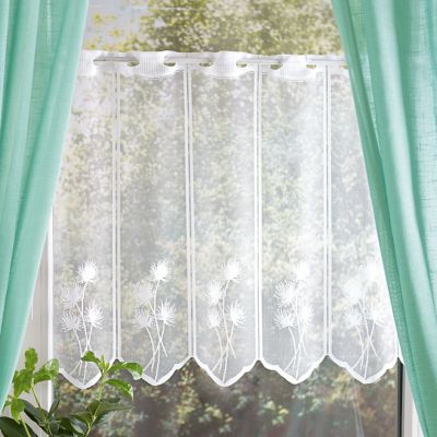 Kurzgardine "Pusteblume", Farbe: weiß, Rapport: 15 cm. Material: 100 % Polyester.